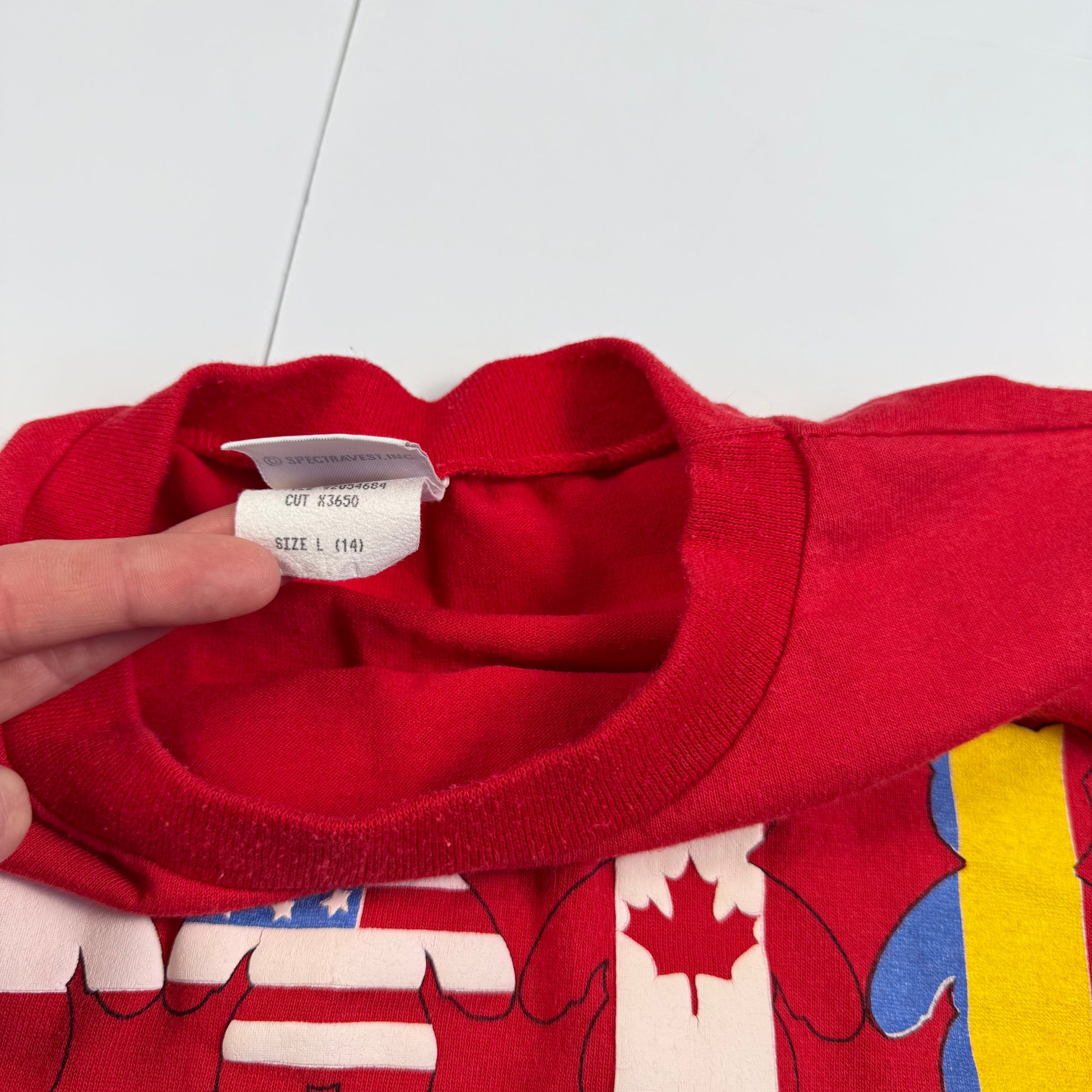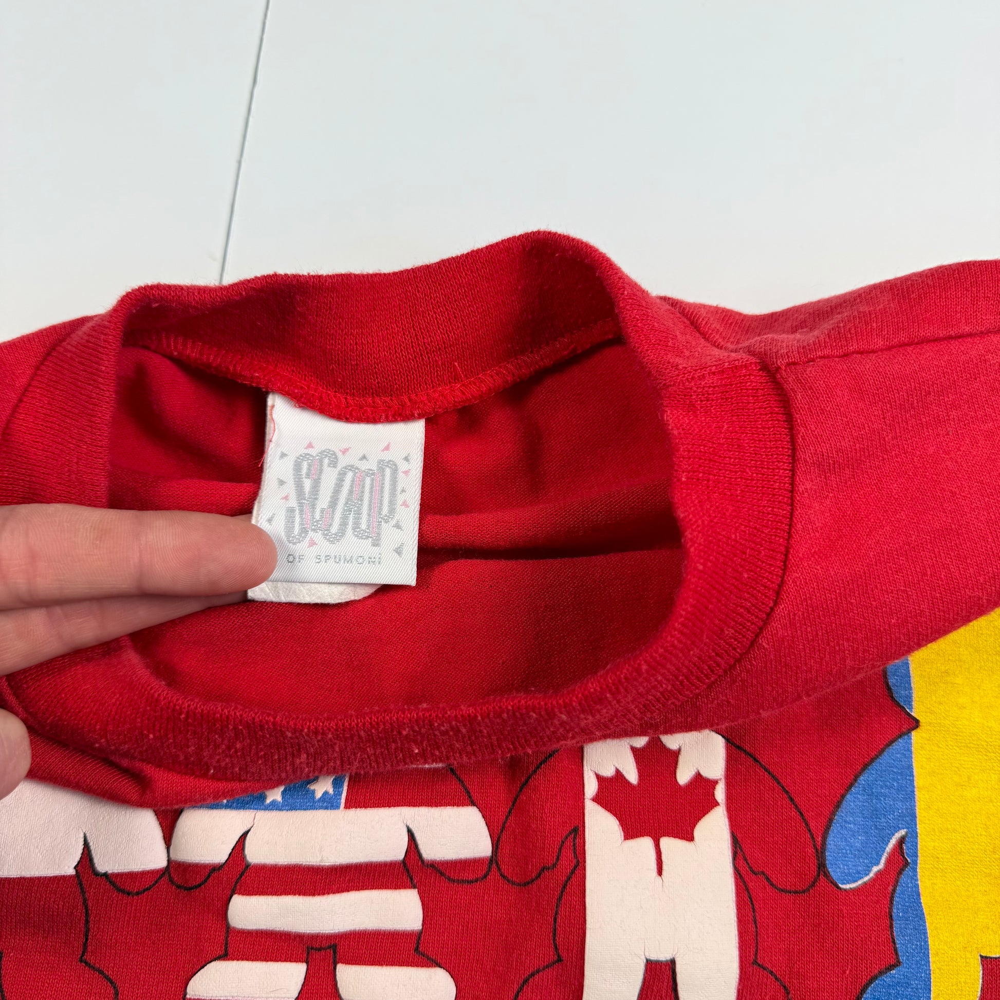 Vintage Spumoni Bear Flag Cropped Shirt - Youth Large